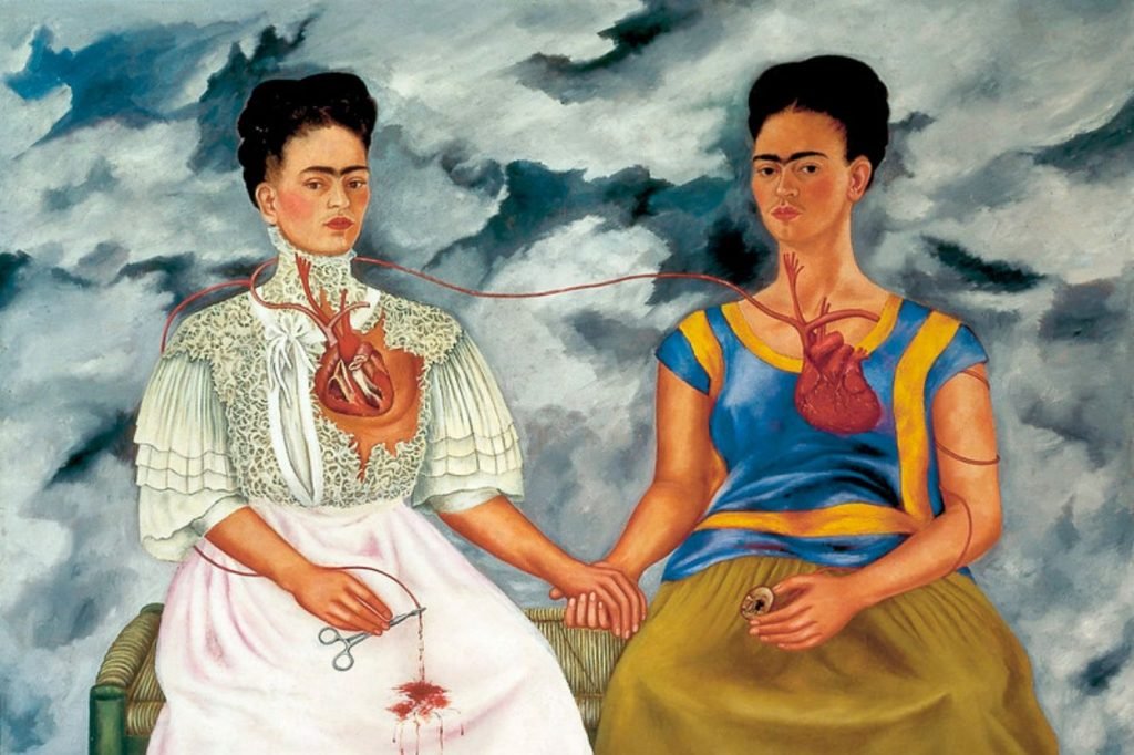 As a child, Frida contracted polio, which left her right leg permanently shorter and eventually led to amputation in her final years. At 18, a catastrophic trolley accident shattered her spine and pelvis, leaving her immobilized in a full-body cast for months. Frida lived in constant dialogue with pain and death, a reality that gives her work its intensity and emotional force.