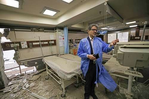 ▲ Un médico muestra los daños en el hospital Gandhi, que fue atacado el primero de marzo, cuando un proyectil impactó una torre de comunicaciones de televisión estatal y edificios cercanos al otro lado de la calle.Foto Afp