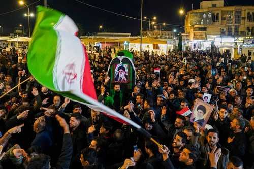 ▲ Chiítas iraquíes portan una réplica del ataúd de Ali Jamenei durante un funeral simbólico en Najaf.Foto Ap