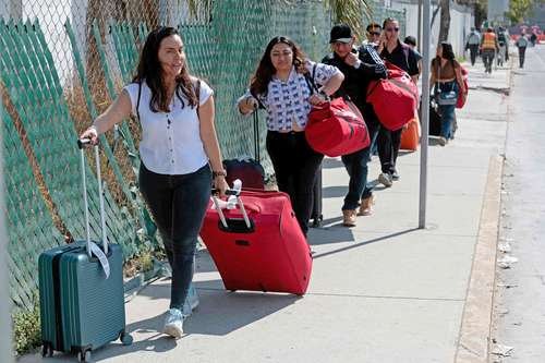▲ Pasajeros salen del aeropuerto de Tlaquepaque tras conocer la noticia de la muerte del líder del cártel Jalisco Nueva Generación.Foto Afp