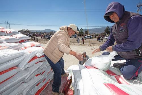 ▲ El precio del abono agrícola ha subido 44 por ciento interanual. En la imagen, una entrega de dicho producto en el programa Bienestar.Foto La Jornada