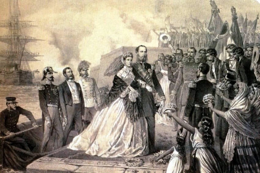 However, Maximilian’s liberal leanings did not go down well in Vienna, and he was recalled after two years. The couple busied themselves remodelling a home, Miramare Castle on the Gulf of Trieste, when a new opportunity presented itself. Across the Atlantic, Mexico was being torn apart by civil war, and many in the Conservative Party felt the answer would be to establish a monarchy. European support of an Emperor might bring protection from both their political rivals and possible United States intervention. Their search for a suitable candidate focused on Maximilian. He had the correct royal pedigree and, most importantly, was available. Believing her husband was destined to achieve great things, Charlotte encouraged him to accept the crown.