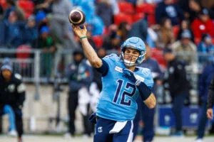 The six-foot-one, 215-pound passer was dominant the last time he played a full season in 2023, winning the league’s Most Outstanding Player award. He threw for 4,123 yards, 23 touchdowns, and 12 interceptions, and rushed 40 times for 248 yards and eight scores. He led the Argonauts to a 16-2 regular-season record, the best in franchise history.