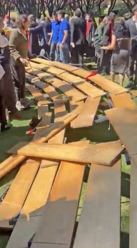 En redes sociales circularon algunos videos de los momentos posteriores a la caída de la tarima, en los que familiares de los estudiantes señalaron “irresponsabilidad” de los encargados de la toma de la foto de generación.