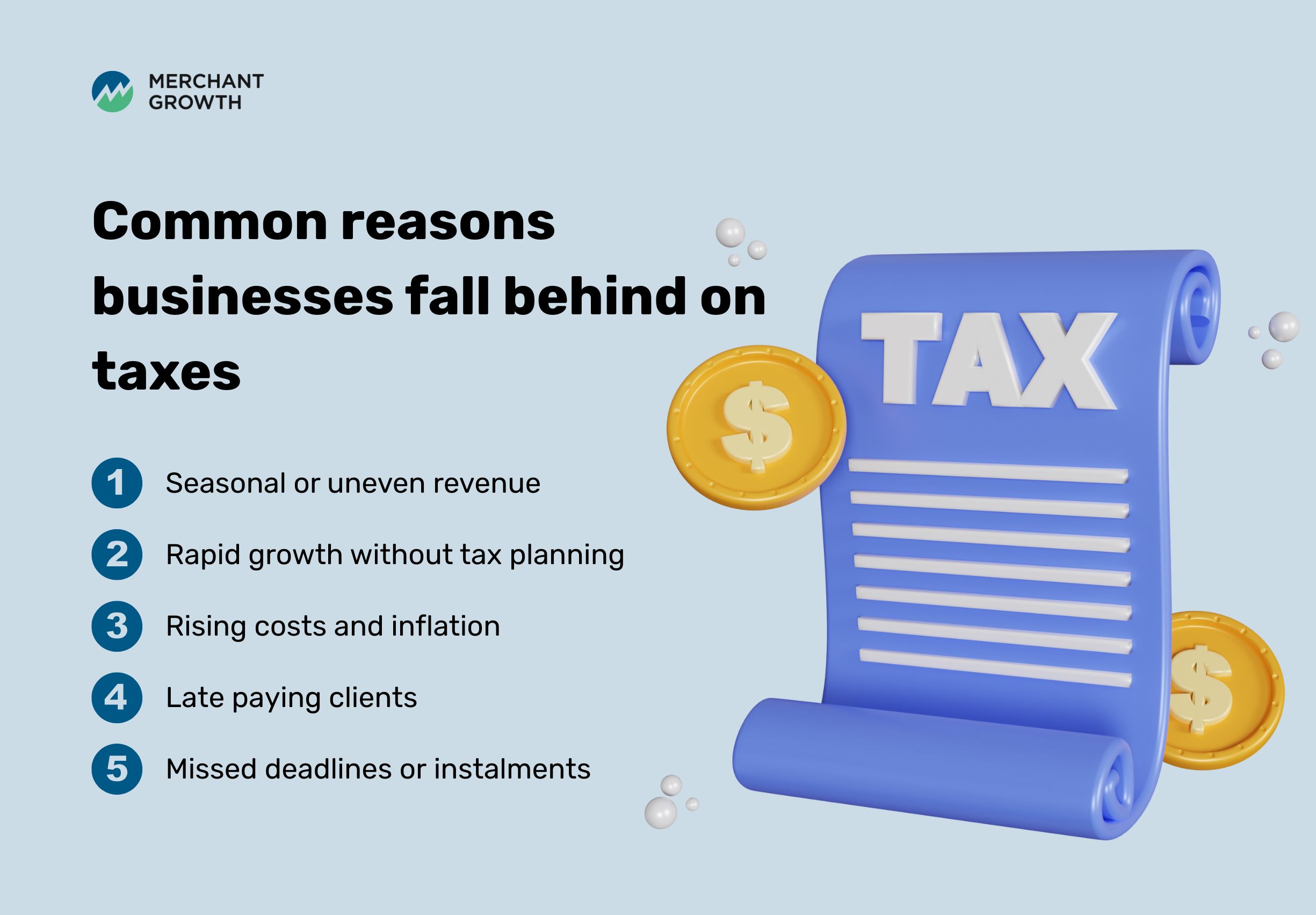 With fast, flexible financing designed around real-world business realities, Merchant Growth can help you clear tax debt in a way that supports your future, not undermines it.