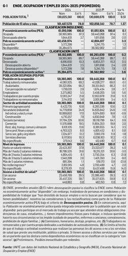El INEGI recién publicó su Encuesta Nacional de Ocupación y Empleo (ENOE) al cuarto trimestre de 2025, con la cual podemos obtener las cifras promedio anual que aquí utilizamos. Así, en el año la población total promedio de México fue de 130.7 millones de personas (0.51% sobre 2024), de las cuales 102.9 m (78.7%) tienen 15 años y más (edad laboral estadística).
