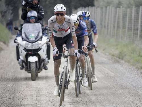 ▲ Fue una competencia dura, el clima lluvioso lo complicó muchísimo, pero estoy contento con encabezar al pelotón, dijo el de Ensenada al terminar la prueba.Foto @TeamEmiratesUAE.