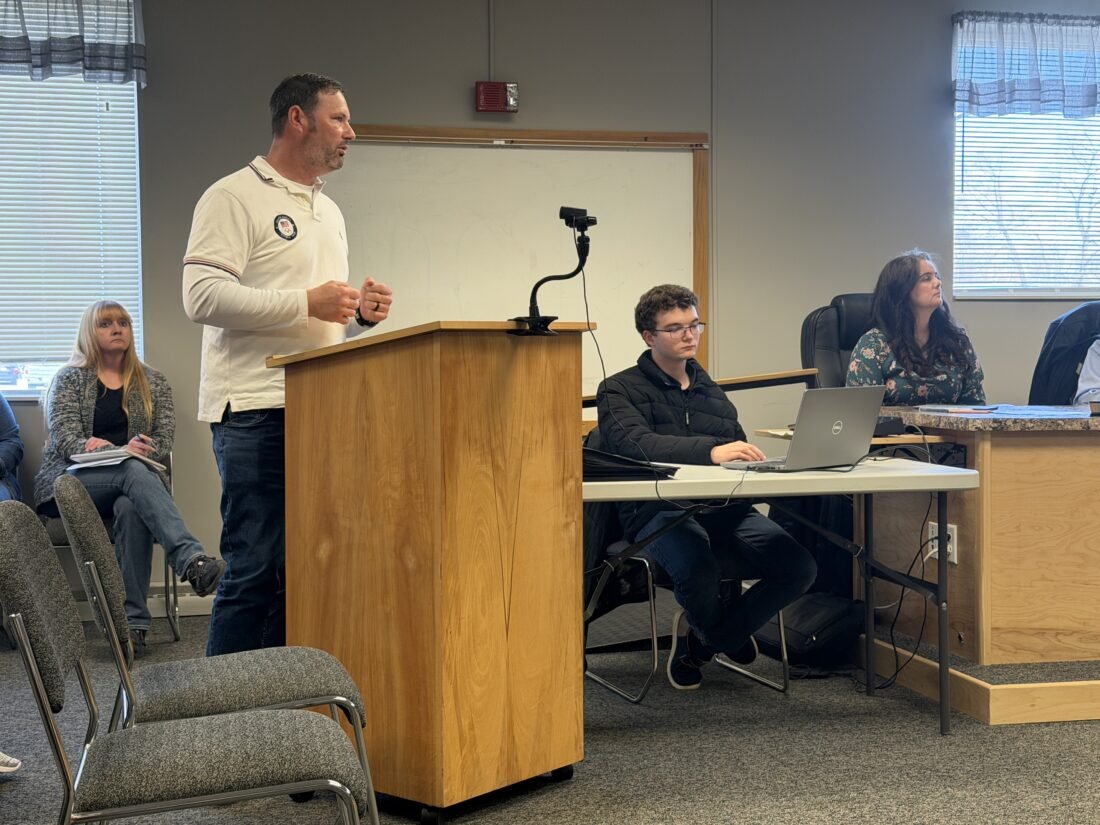 Foto de noticias de Kayla Wikaryasz El viernes, se ve a Jason Atwell, jefe de producción y eventos de Blackwater NE, dando una presentación ante la Junta de Comisionados del condado de Alpena sobre un proyecto de complejo de entretenimiento que se construiría en la propiedad del recinto ferial del condado de Alpena.