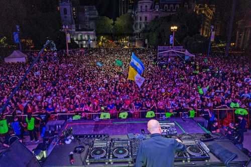 ▲ El diyéi padre Guilherme dedicó al papa Francisco su presentación en la Plaza de Mayo, en Buenos Aires, Argentina.Foto Afp