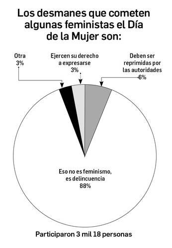 El tema del sondeo de esta semana es la violencia y desmanes que acompañan la celebración del Día Internacional de la Mujer. Los resultados, en la gráfica.