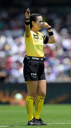 ▲La árbitra Katia Iztel García recibió un insulto misógino del técnico del Mazatlán, Sergio Bueno, en el partido del pasado domingo ante los Pumas.Foto Afp