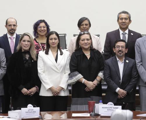▲ Comienza una nueva era para el instituto, destacó la consejera presidenta (centro) tras la toma de protesta. A la derecha de Guadalupe Taddei, Frida Denisse Gómez Puga y Blanca Yassahara Cruz García; a su izquierda, Arturo Chávez López.Foto La Jornada