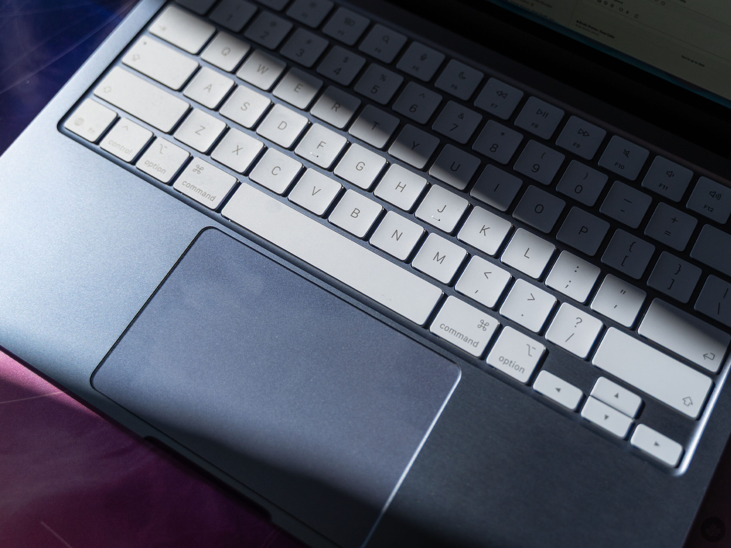Once you look a little closer, though, some of the compromises reveal themselves. The colour-matched keyboard looks great, but I was disappointed to discover there’s no backlight, making it harder to use in dim and dark rooms. And while the build quality is generally very good, it’s not quite at the level of the Air or Pro. For example, I noticed on my Neo review unit that the bottom panel had very slight warping around the screws, indicating the soft aluminum was bending under the pressure. It’s a barely noticeable imperfection, but Apple hardware rarely has noticeable imperfections at all.
