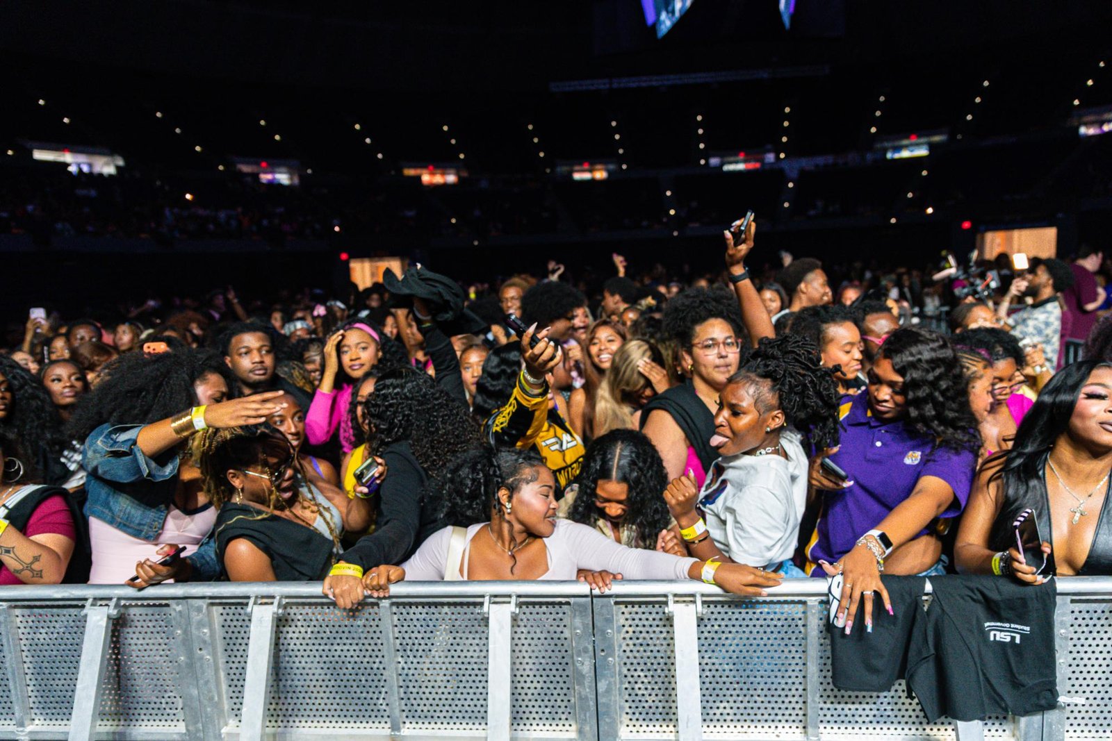 El evento gratuito que se lleva a cabo solo para estudiantes de LSU se ha convertido en una tradición básica del semestre de primavera y ofrece la oportunidad de relajarse antes de los exámenes. A las 7 pm, ya se había formado una fila afuera del PMAC mientras los estudiantes esperaban que se abrieran las puertas a las 7:30 pm, con la esperanza de asegurar lugares cerca del escenario.