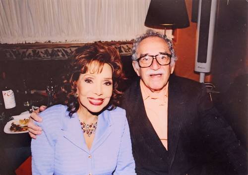 ▲ La actriz y cantante junto al escritor colombiano Gabriel García Márquez en una imagen que se incluyó en la exposición de 2025 Dos luceros que se acercan: Miradas a Maria Victoria.Foto La Jornada