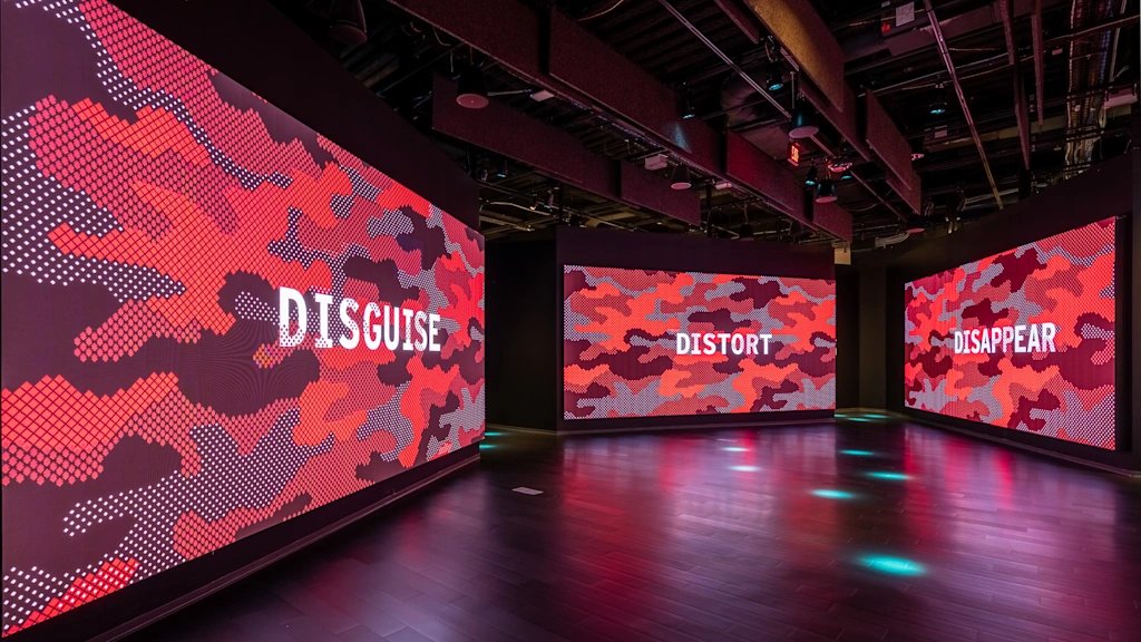 To tell that broader story, the museum worked with the experience design studio Local Projects, which helped craft a narrative for the exhibition and designed the physical—and highly visual—visitor experience. “An exhibition about camouflage is a designer’s dream, really, because camo itself is this really unique kind of design,” says Nathan Adkisson, creative director of Local Projects.