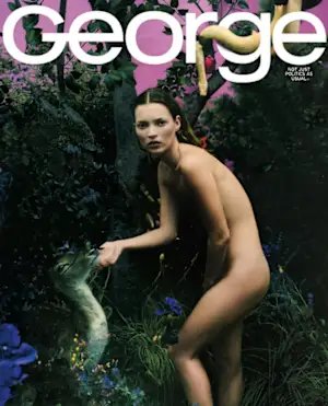Kennedy ultimately had Berman stay on in a permanent role, and they became close creative collaborators in developing the magazine’s overall visual look. George was highly art directed and visually-forward as a way to trojan horse politics as a curated, sometimes campy fashion pub. Berman designed the logo (Univers, Kennedy picked it for the “Ge” ligature), the covers and their concepts and helped select talent, and everything on the pages in between.
