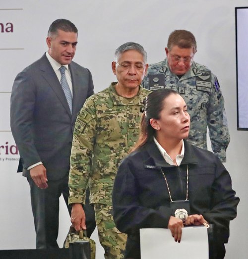 ▲ Aspecto de la conferencia de prensa del gabinete de seguridad, realizada ayer.Foto Luis Castillo