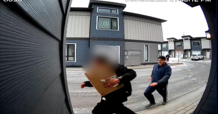 A Rutland neighbourhood in Kelowna, B.C., became the scene of an unexpected chase this week after a handyman working nearby confronted a suspected package thief, all caught on video.