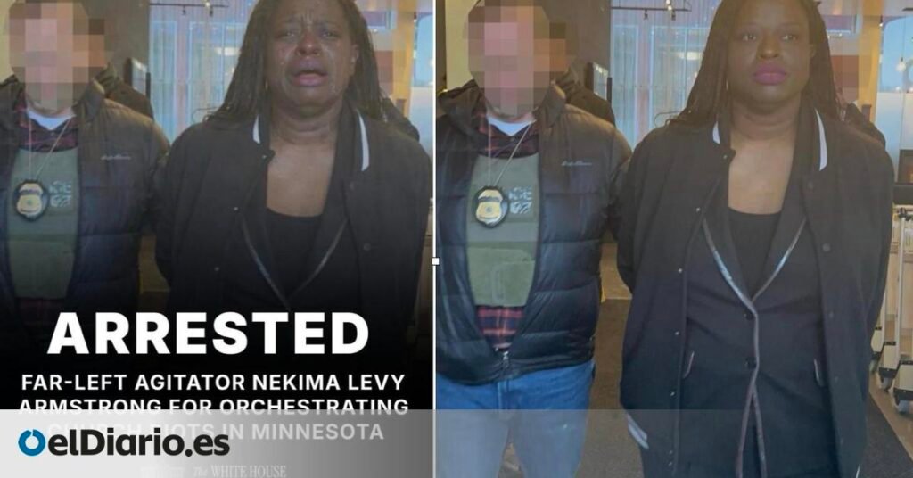 La misma imagen, pero sin manipular, ha sido difundida este jueves por la secretaria de Seguridad Nacional, Kristi Noem: “Los investigadores de Seguridad Nacional y los agentes del FBI arrestaron a Nekima Levy Armstrong, quien desempeñó un papel clave en la organización de los disturbios en la iglesia de Saint Paul, Minnesota. Se le acusa de un delito federal. La libertad religiosa es la base de los Estados Unidos: no existe el derecho de la primera enmienda a impedir que alguien practique su religión”.