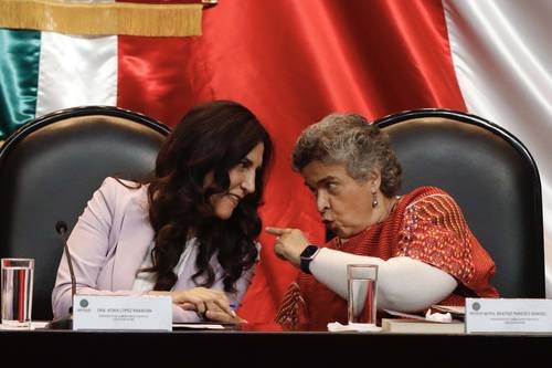 ▲ CONVERSATORIO EN LA CÁMARA DE DIPUTADOS. Kenia López Rabadán llamó a las mujeres a ser guardianas de la democracia mexicana al inaugurar el Conversatorio de Presidentas de la Cámara de Diputados, al que asistieron, entre otras, la priísta Beatriz Paredes Rangel.Foto Germán Canseco