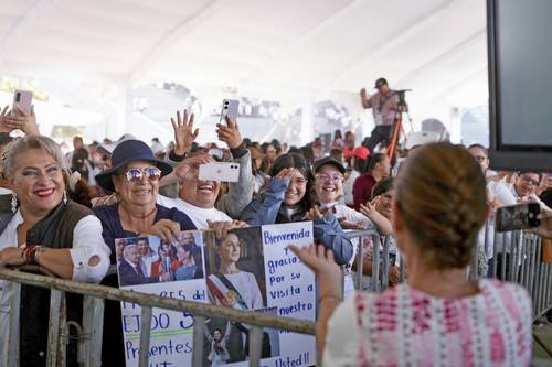 ▲ GIRA EN BAJA CALIFORNIA SUR. Como parte de su gira de fin de semana que culminó ayer, la Presidenta entregó tarjetas de Programas para el Bienestar en Comondú, Baja California Sur.Foto Presidencia