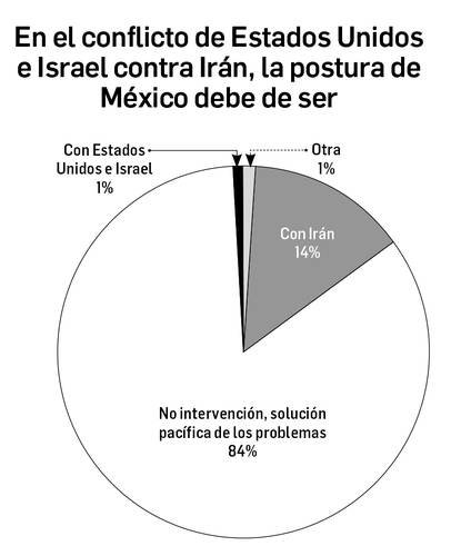 n el conflicto de Estados Unidos e Israel contra Irán, ¿cuál debe ser la postura de México? Este es el tema del sondeo de la semana. Los resultados aparecen en la gráfica.