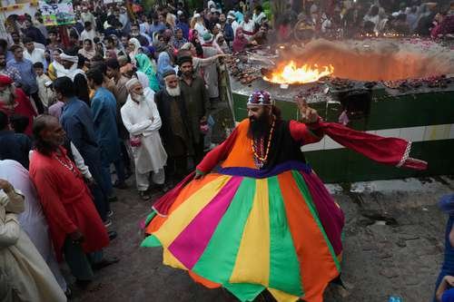 ▲ Danza tradicional en el santuario del santo sufí Shah Hussain, para rendirle homenaje durante el Festival de las Luces, celebración anual de tres días en Lahore, Pakistán.Foto Ap