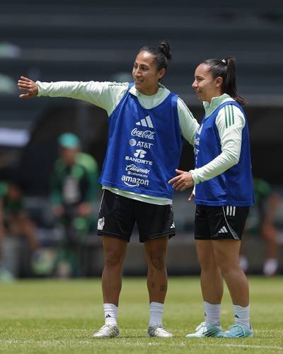 ▲ Stephany Mayor y Charlyn Corral, durante la práctica antes del duelo clasificatorio de Concacaf frente a las boricuas.Foto @Miseleccionfem