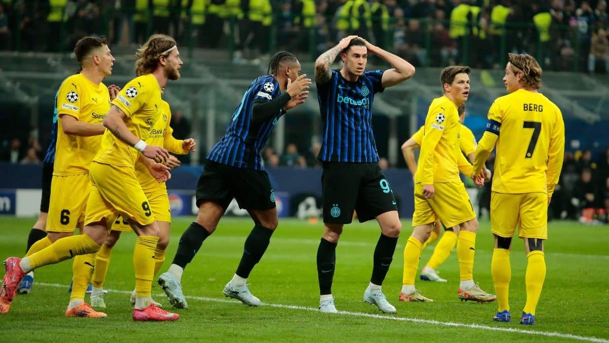 Staring down the barrel of an early exit, Bastoni pulled one back to just about keep them in the game in the final 10 minutes when his header after a scramble was adjudged to have crossed the line – but Inter still needed three to stay in the tie.