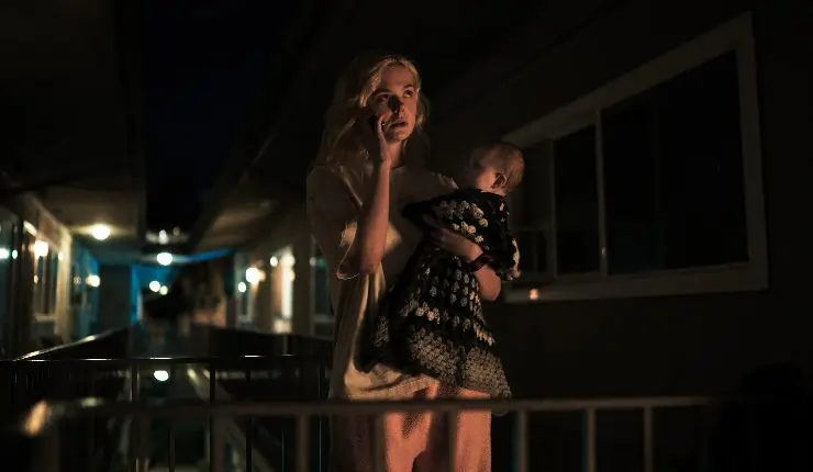 Margo’s Got Money Troubles shines the brightest in its relationships. Margo’s mother, Shayanne (Michelle Pfeiffer), is not keen on the idea of being a grandmother, especially the grandmother of a scandal-born child, as she establishes a new relationship of her own. The pair have a loving, occasionally scratchy bond that veers between parent-child and close friends. As Jinx, Margo’s ex-wrestler, recovering drug addict, and distant father, Nick Offerman excels. There’s a striking intensity and vulnerability to his performance, which both Fanning and Pfeiffer play off of to create a trio of relationships that feel established, complex and very real. Occasional lingering, slow-zoom shots on a character’s face allow the cast to really milk and give nuance to these connections.