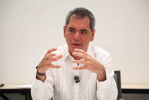 ▲ El secretario de Hacienda y Crédito Público, Édgar Amador Zamora, en entrevista.Foto La Jornada