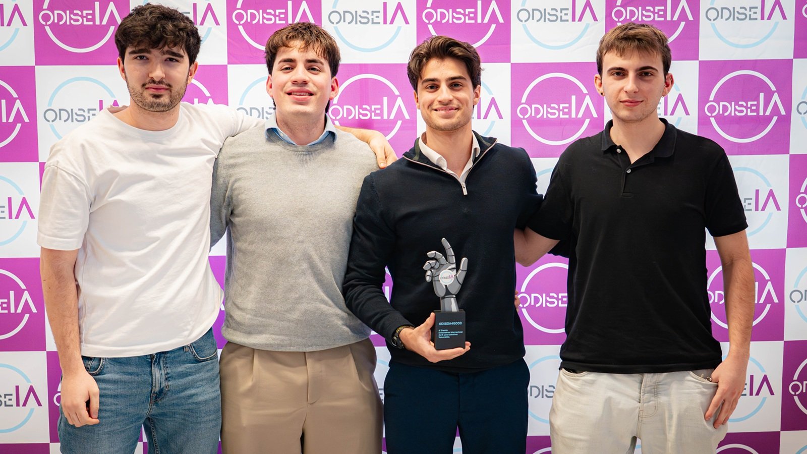 Con edades comprendidas entre los 20 y 21 años, los estudiantes Hugo Osma, Carlos Parra, Manuel Bayo, Alejandro Blanco y Gonzalo Sánchez han demostrado su talento en este reto tecnológico impulsado por OdiseIA, el Observatorio del Impacto Social y Ético de la Inteligencia Artificial.