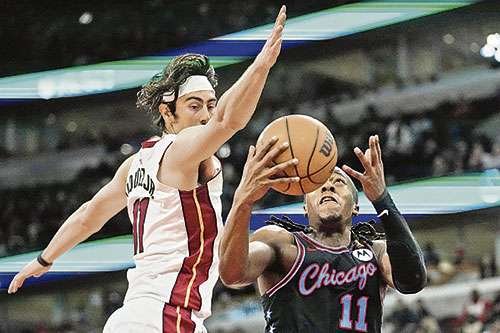 El mexicano-estadunidense Jaime Jáquez Jr (de blanco) anotó 19 puntos en la victoria del Miami Heat 116-113 sobre los Bulls de Chicago. En otros duelos, los Wizards de Washington derrotaron 109-99 a los Bucks de Milwaukee y los Rockets de Houston superaron 104-86 a los Hawks de Atlanta.