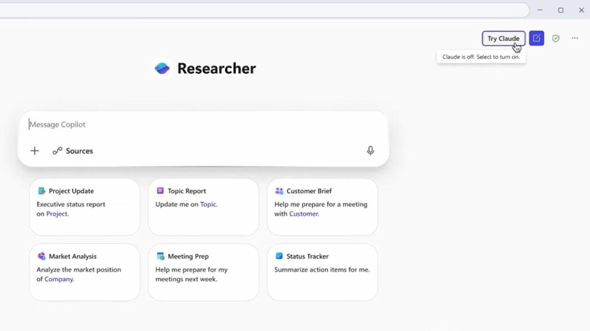 Microsoft posted the brief video below. It shows a new “Try Claude” button in the upper-right corner of the research agent’s interface.