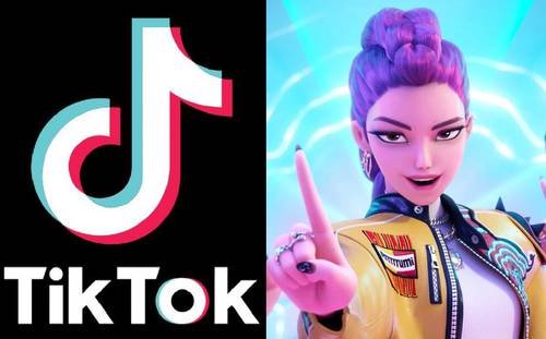 ▲ Logo de TikTok y un personaje de Las guerreras K-pop de Netflix.Foto Europa Press