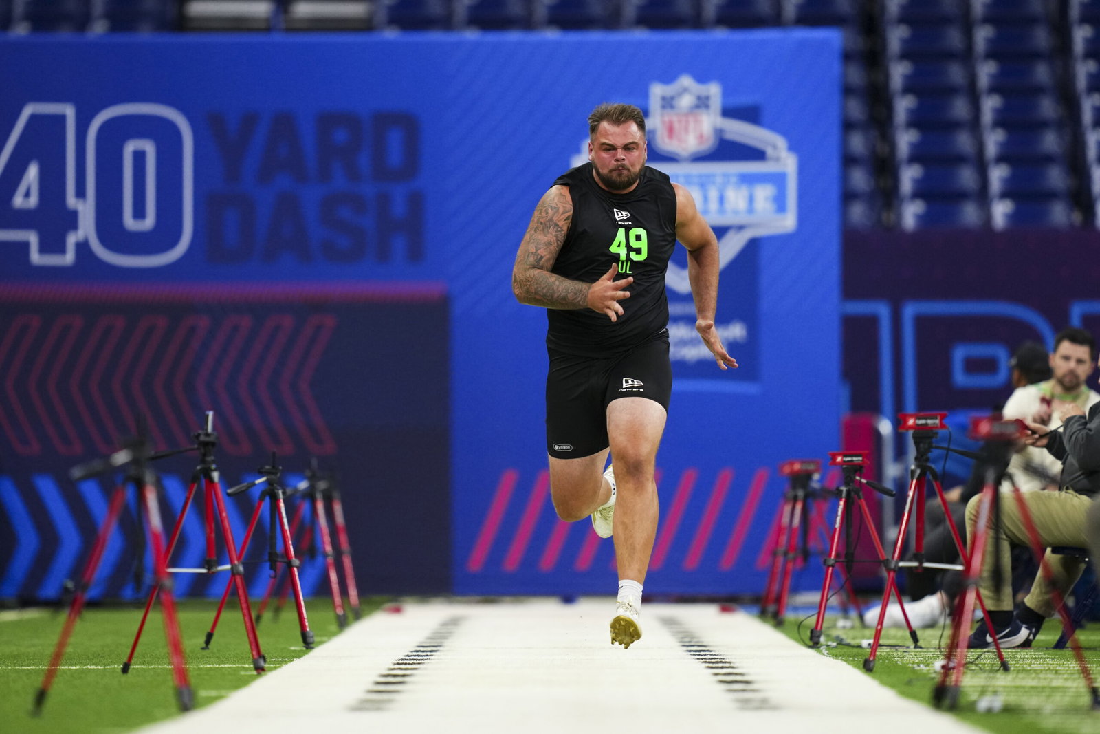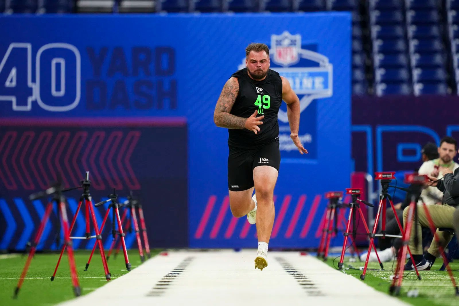 His forty time was 30th amongst the offensive line group, while his vertical tied for 20th and broad tied for 21st. He later clocked a 7.75-second three-cone drill and a 4.84 short shuttle — both middle of the pack amongst a smaller group of participants.