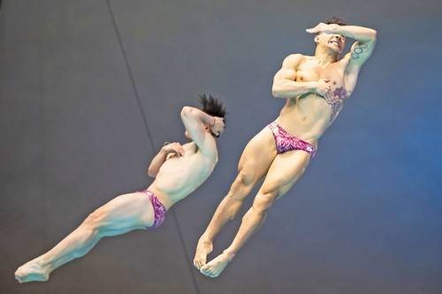 ▲ Osmar Olvera y Juan Celaya cumplieron con las expectativas y se llevaron el segundo lugar en la prueba de trampolín sincronizado. Fueron superados por los chinos Zongyuang Wang y Jiuyuan Zheng, mientras el bronce fue para los británicos Anthony Harding y Jack Laugher.Foto Ap