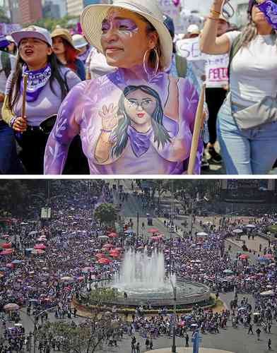 ▲ Decenas de miles de mujeres marcharon ayer al Zócalo desde temprana hora, en una jornada de resistencia que concluyó alrededor de las 9 de la noche.Foto Cristina Rodríguez