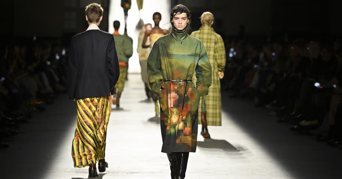 At Dries Van Noten, Julian Klausner engaged on a detour around the most exotic and ineffable of topics: the building of identity at the end of youth, right before adulthood sets in and things solidify. He did so in a very Dries kind of way, taking things from here and there, mixing school uniforms, embellishment, mannish pieces, cozy knits and whiffs of other cultures, plus some grunge. We’ve seen this sort of thing on the Dries catwalk many times, but not quite in the same way. In fact, as much as Klausner’s language feels familiar, there is a raw edge, a fresh bluntness to it which is entirely his own and integral to how he is evolving Dries in such a convincing way. This season the proposal felt particularly tight and trembling: a poetic vision of the self as both personal and multicultural wandering, summed up in a killer silhouette that was narrow and vertical, grounded by stompy-heeled boots.