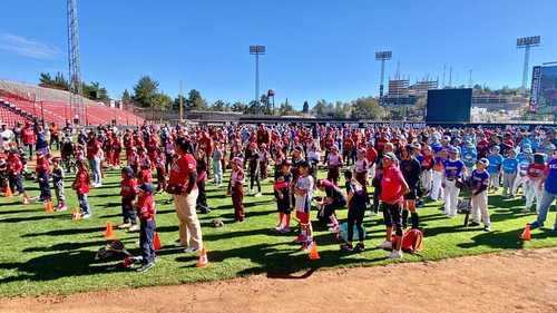 Entre las actividades que se realizaron, hubo calentamiento previo con promotores de activación física, demostración y ejecución de fundamentos básicos de beisbol y softbol (bateo, lanzamiento, recepción), entre otros ejercicios por más de una hora.