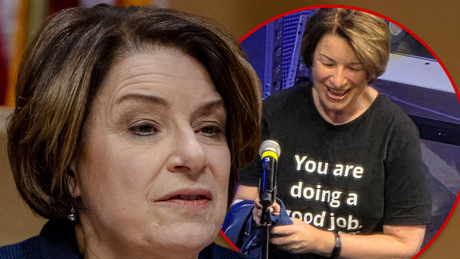 That’s right … Klobuchar sported a T-shirt emblazoned with the words, “You’re Doing A Good Job,” while attending a high school event in Minneapolis, MN, on Friday morning.