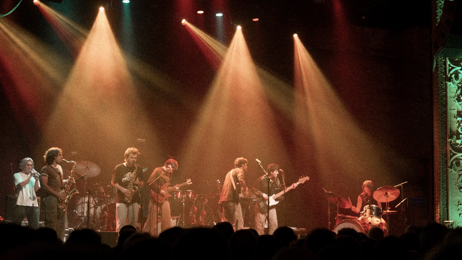 Racing Mount Pleasant are the type of band most comfortable in lived-in spaces, having spent their earliest days spilling into tight corners of houses across Ann Arbor. Onstage at The Majestic in Detroit, it’s the opposite, staring out at 1,100 faces for their biggest show to date, opening for Geese’s Getting Killed tour. In between songs, vocalist/guitarist Sam DuBose jokes that no matter where you’re standing in the crowd, one of their family members is close by. As they play through a blaze of new material, he grows somber again, singing of memory, heartbreak, and longing in lavish detail. While Racing Mount Pleasant are a seven-piece, onstage, they essentially stand in a straight line, conveying that there’s no real hierarchy to their group. Rather, they function as a finely tuned union, always an arm’s length away from another member. They’ve exchanged low ceilings for blinding stage lights, but they still hold on to that intimacy whenever they play, translating it for sold-out rooms like this one. Part of their move to Chicago, made official a month before this performance, sates a desire for the changes they’re already starting to feel, for pockets of community where strangers become peers.