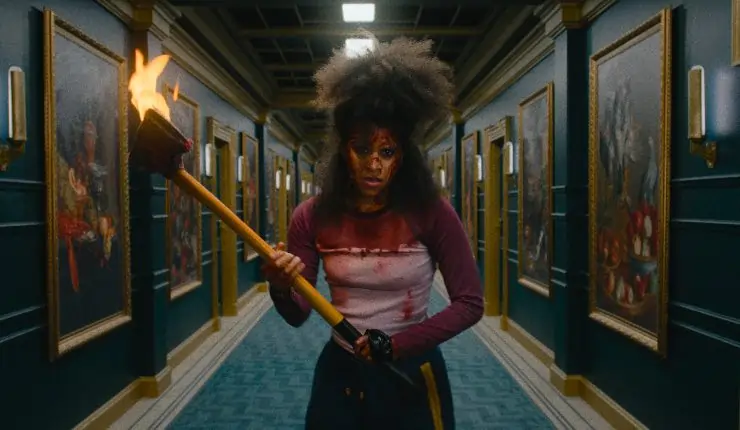 Everything in They Will Kill You feels borrowed to some extent. Sam Raimi and Quentin Tarantino are the most blatant inspirations, especially when the martial arts scenes arise. A slickly choreographed combination of Kill Bill and Evil Dead, everything that can be spliced and splattered does so, and although they’re a lot of fun, the movie’s tone is swiftly swapped at this instance from a Polanski- or Ready Or Not-esque creep-fest to all-out comedy-horror. Comic books are a clear influence too, but more notably, video games, the hotel setting lending the film a distinctly video game feel as Asia darts and ducks her way from floor to floor like literal new levels, defending herself against a slew of immortal baddies and befriending a vigilante janitor (Paterson Joseph with a Southern American drawl) en route. There’s even a scene where Asia does battle with the ultimate Final Boss, and another where she shuffles through the crawl space while dodging a knife, making this only the second time we’ve seen this exact scene in a horror movie in 2026 (I’m looking at you, Scream 7). Is there something in the water since crawl spaces were nowhere and suddenly everywhere? Pretty sure the only time I’d seen this onscreen beforehand was in that one episode of Breaking Bad and Bob’s Burgers.