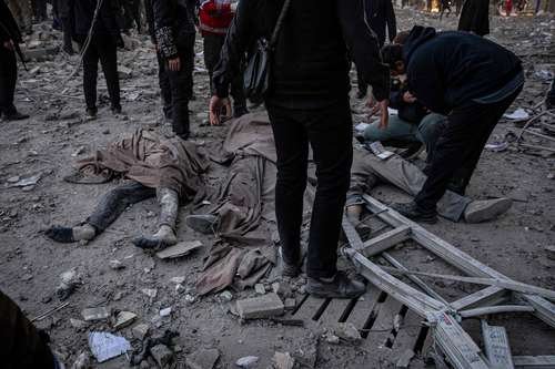 ▲ Voluntarios observan a víctimas de un ataque a un edificio en la plaza Enghelab de Teherán. Pese a que Israel y Estados Unidos han asegurado que sus blancos son objetivos militares, fuentes de la república islámica aseguran que los afectados son civiles.Foto Afp