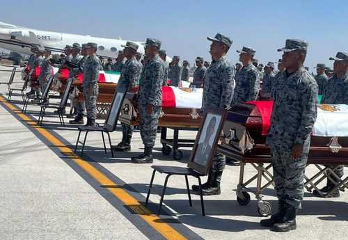 ▲ La Defensa rindió ayer homenaje en Jalisco a sus elementos caídos en el operativo contra Nemesio Oseguera y luego envío los restos a sus estados de origen.Foto Sedena