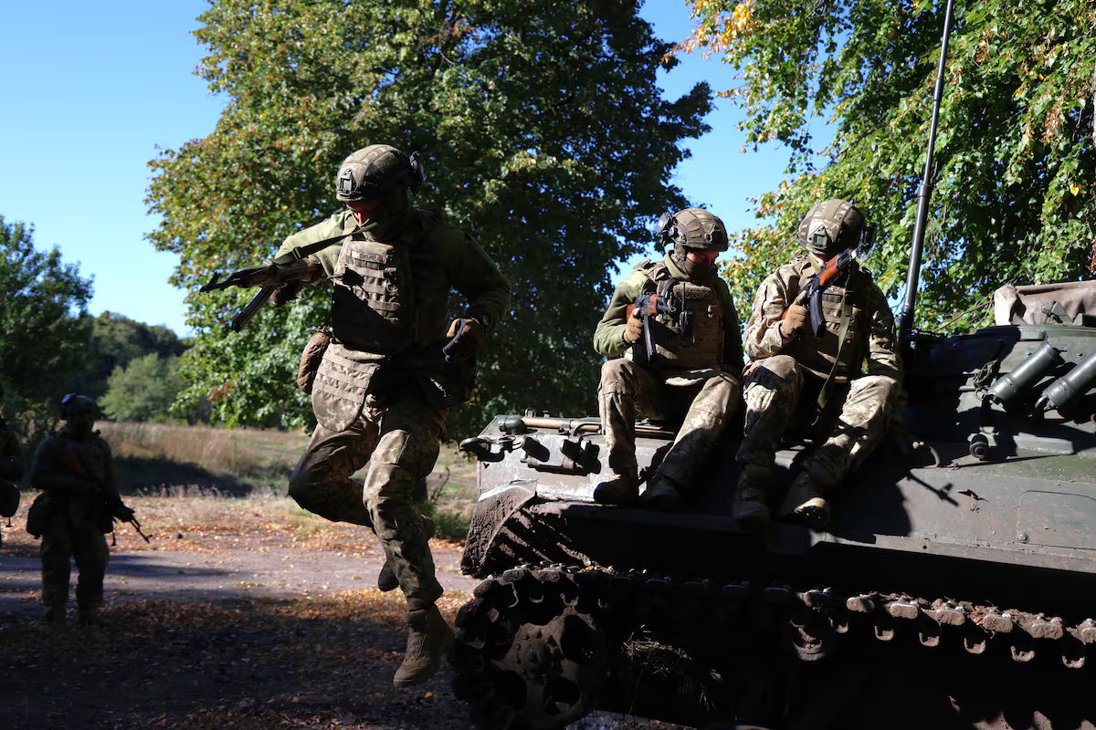 Alexander, 21, has no doubt that the main reason for joining the army as a volunteer is to “defend the homeland.” He has just jumped out of a BMP 2 infantry fighting vehicle, rifle in hand, which is used for training exercises. When he was 17, Russia invaded and he fled to Poland with his family. His father returned and enlisted, but he was unable to do so after several attempts because he was told he was too young. With the government sponsored 18-24 campaign, he has found his opportunity. “Quick, quick, quick!” the instructor shouts, while asking the others to lie down on the ground in firing positions.